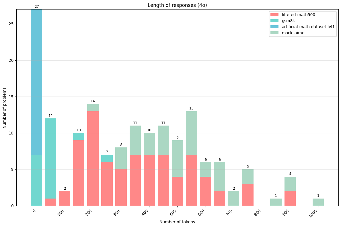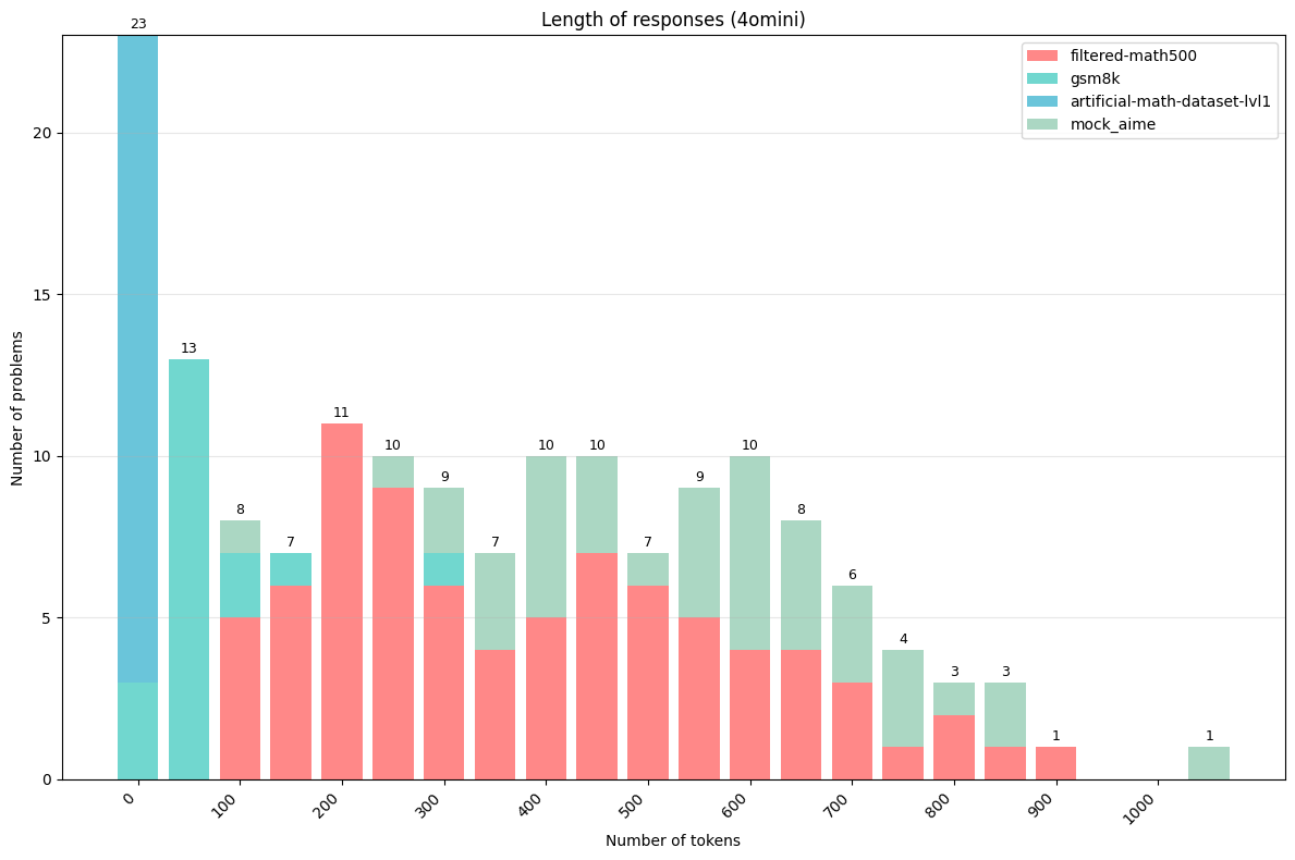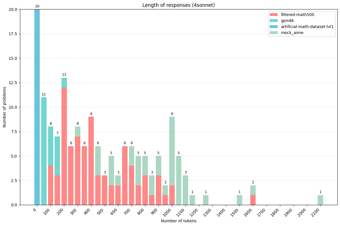 - Math-500 (filtered): A subset of 167 problems from the original 546 GPQA-extended problems, where Claude 3.7-Sonnet performs more than 50% better with CoT compared to giving an immediate answer.